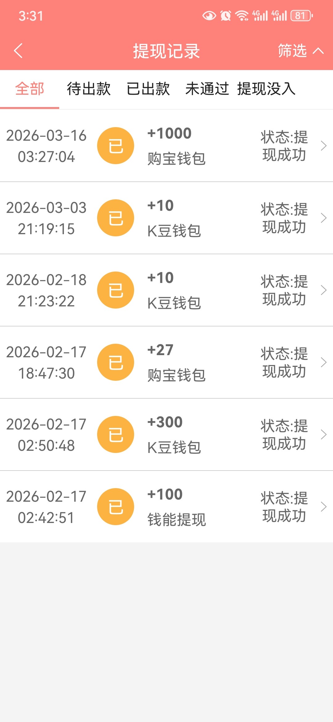 从25年12月开始到现在没赢过我也不知道怎么了,冲多少死多少,你们战况怎么样,天天骂专属客服他妈的现在根本不知道提现什么感觉昨天提现周彩金连他妈的提现密码都忘记了