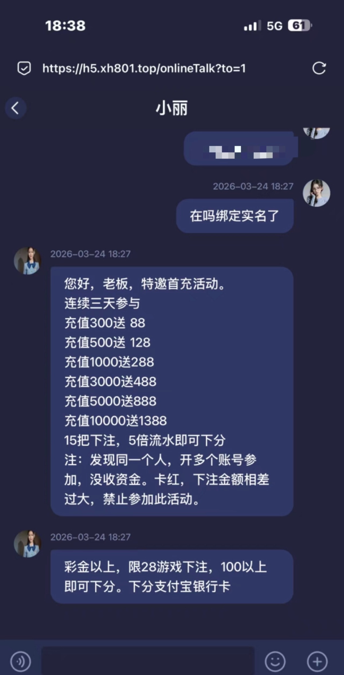 链接xh12.vip 自行碰瓷,送了88没打出,翻了翻贴看到这个半黑,勿充值