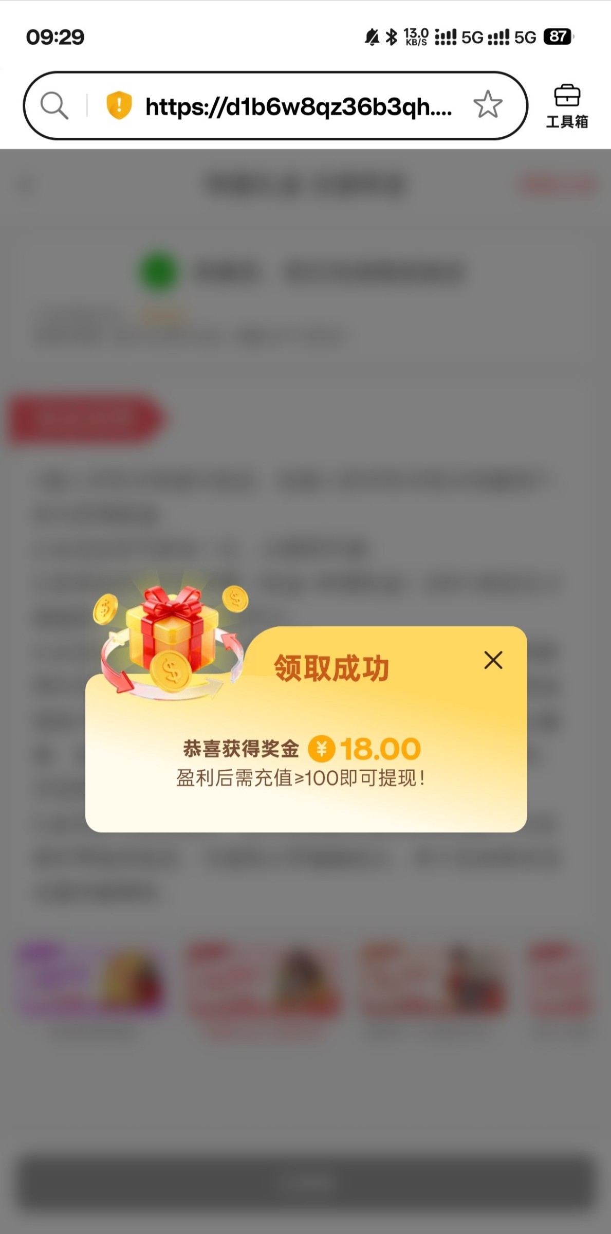 收到短信,绑定验证手机号自助申请。送了18提现需要充值100,没打出来,还没打不知道黑不黑。 006.vip