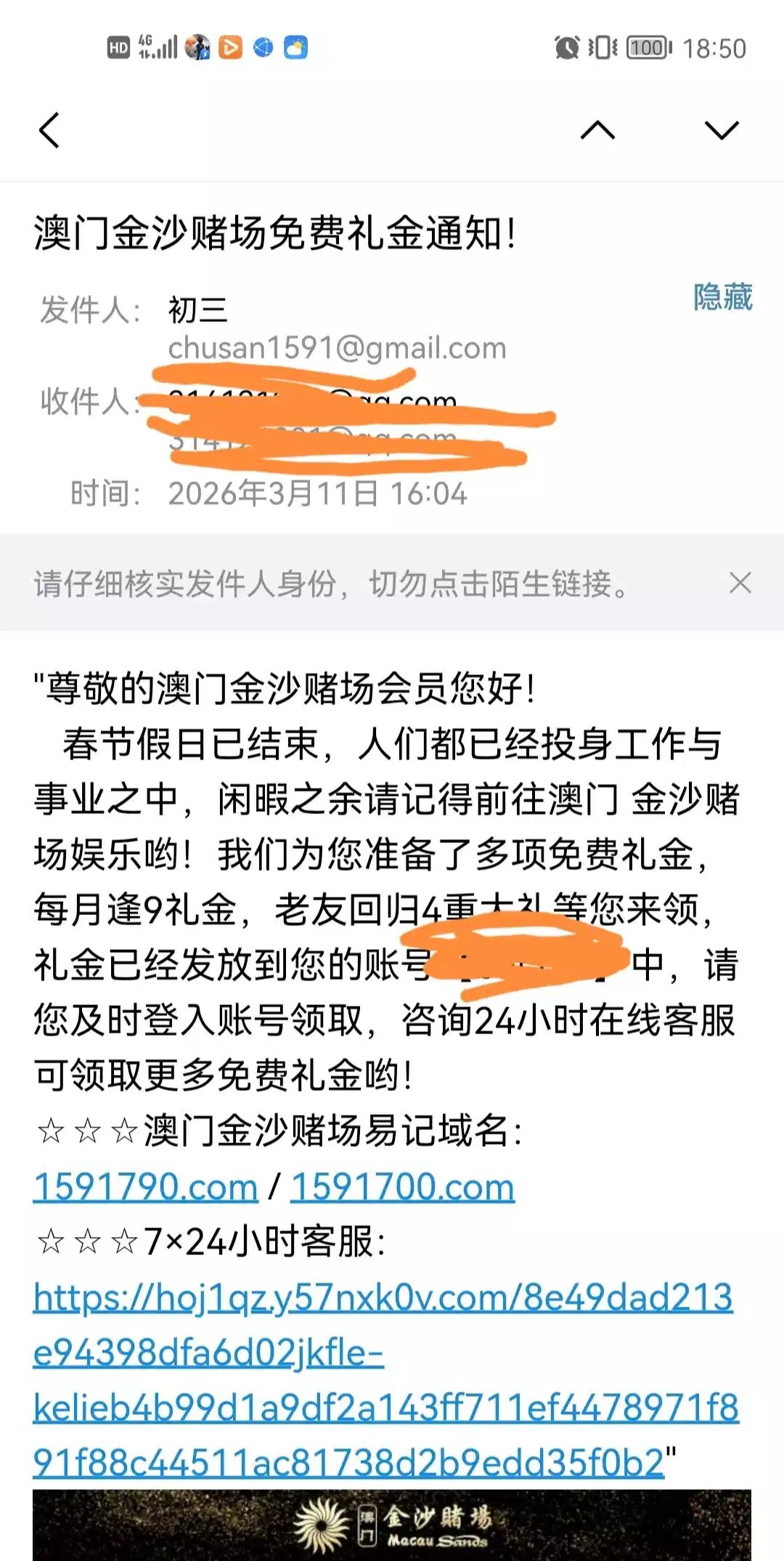 收到邮件通知,才知道他们家送回馈 ,送了39没有打出来,有账号的,去邮箱看看有没有,没有的可以网址:1591790.com 1591700.com忽略