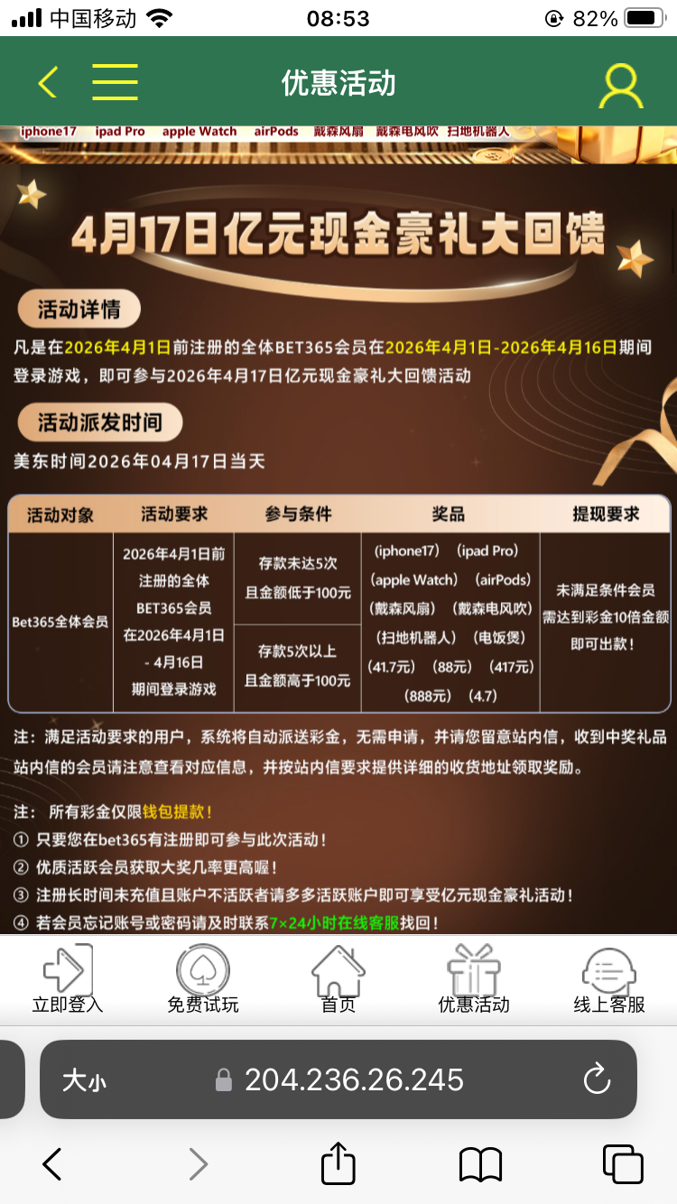 今天登陆,明天送彩金,有可能苹果17 ,没注册的今天注册,是特邀自动秒36  ,不是特邀的明天领苹果17,网址 ,417.com