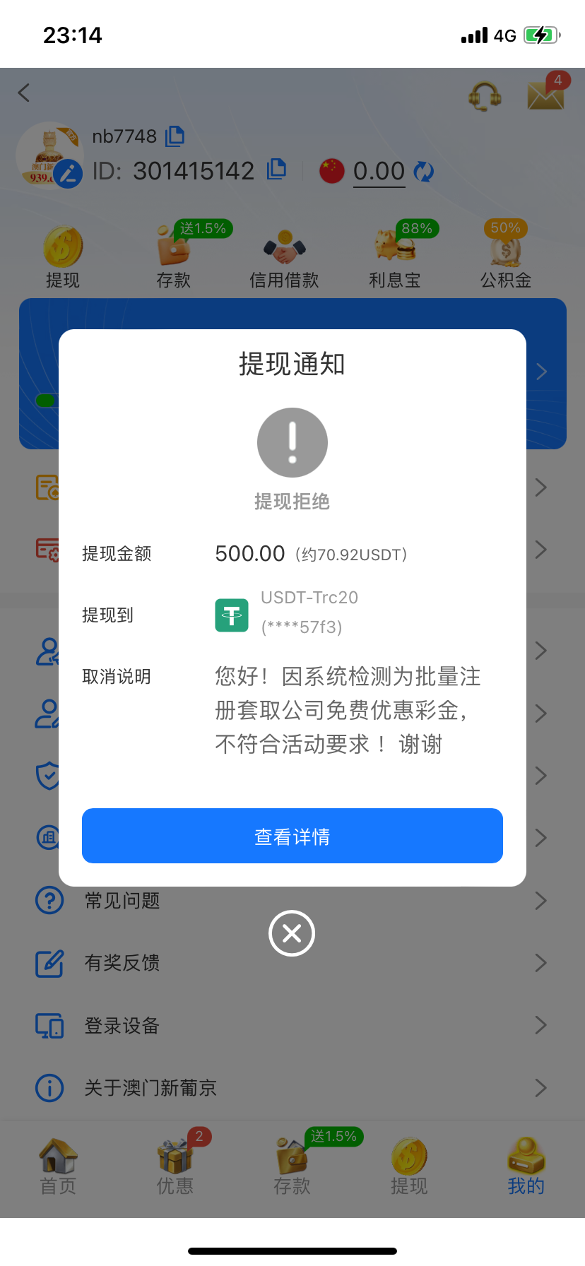 我第一天注册领的彩金打 居然说我注册多个账号套利