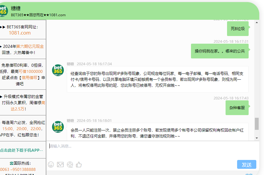 这几天输了1500进去,今天爆了个千倍1300提现封号,太牛逼了,还是李白狗庄担保的,担保他妈逼鸟都不鸟人