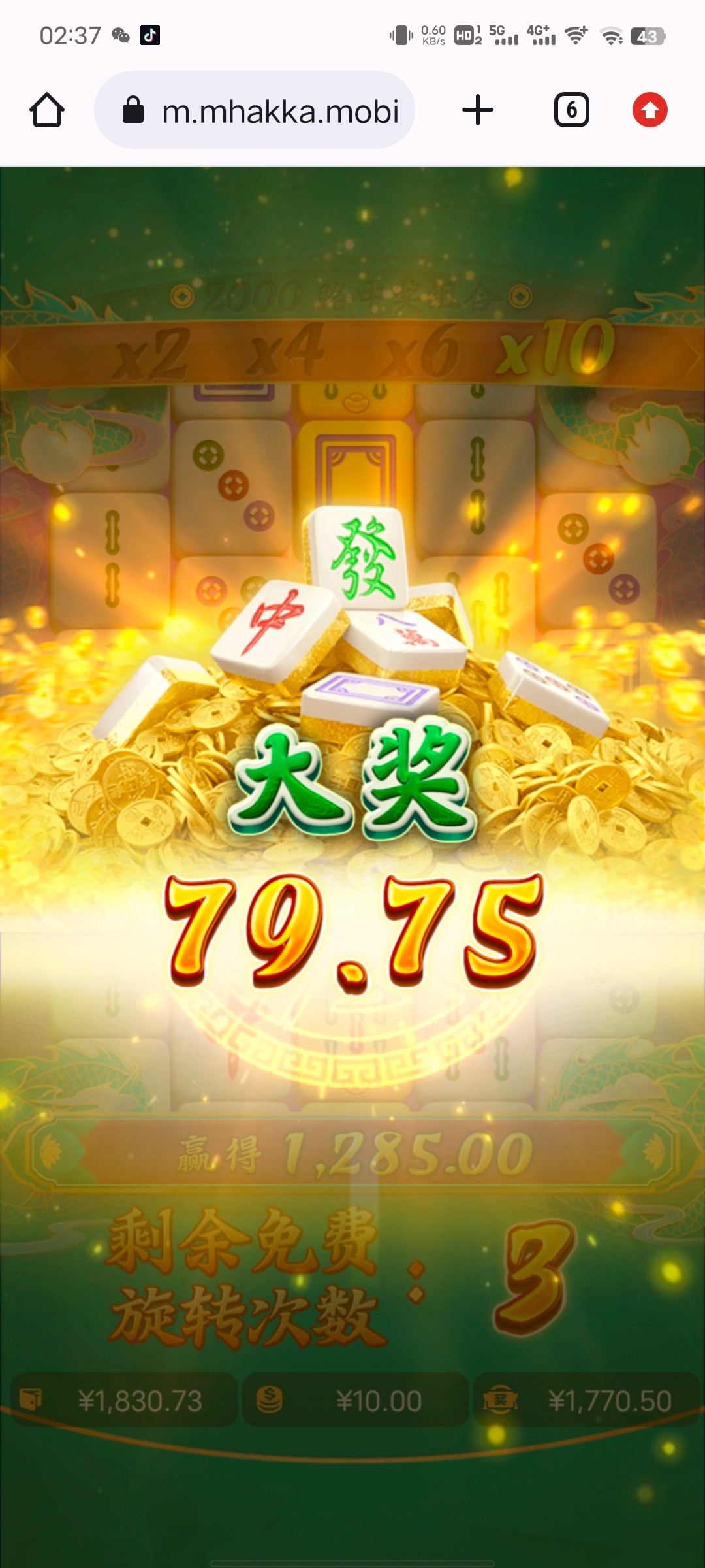 财神369: 电子游戏已经堕落了。根本爆不了大奖。不是空转就是空转。没一个能赢的。中麻将的毒了