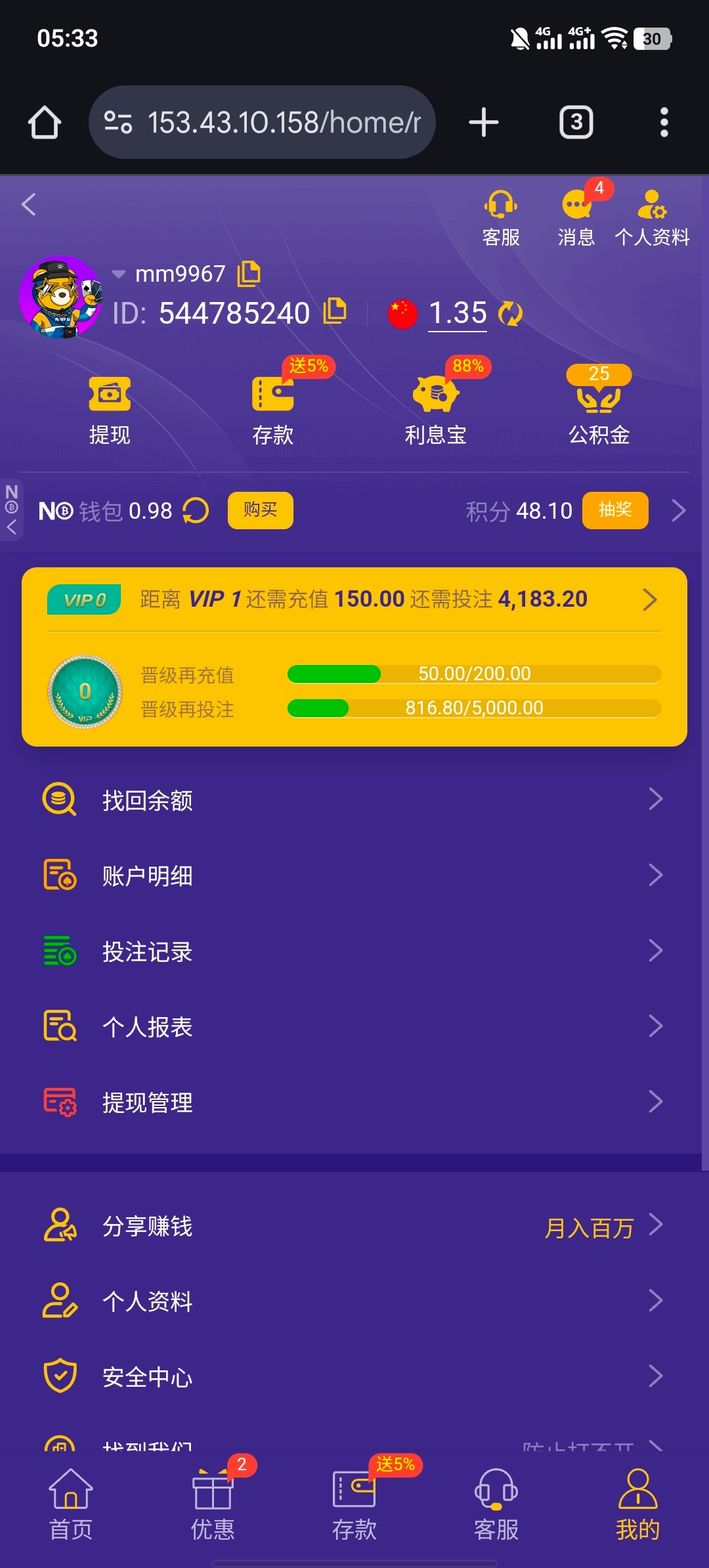 太久没玩,提现要充同等金额,倒下了,充不起了,谁玩?打出来37分,我三,还有月彩金和周彩金没领