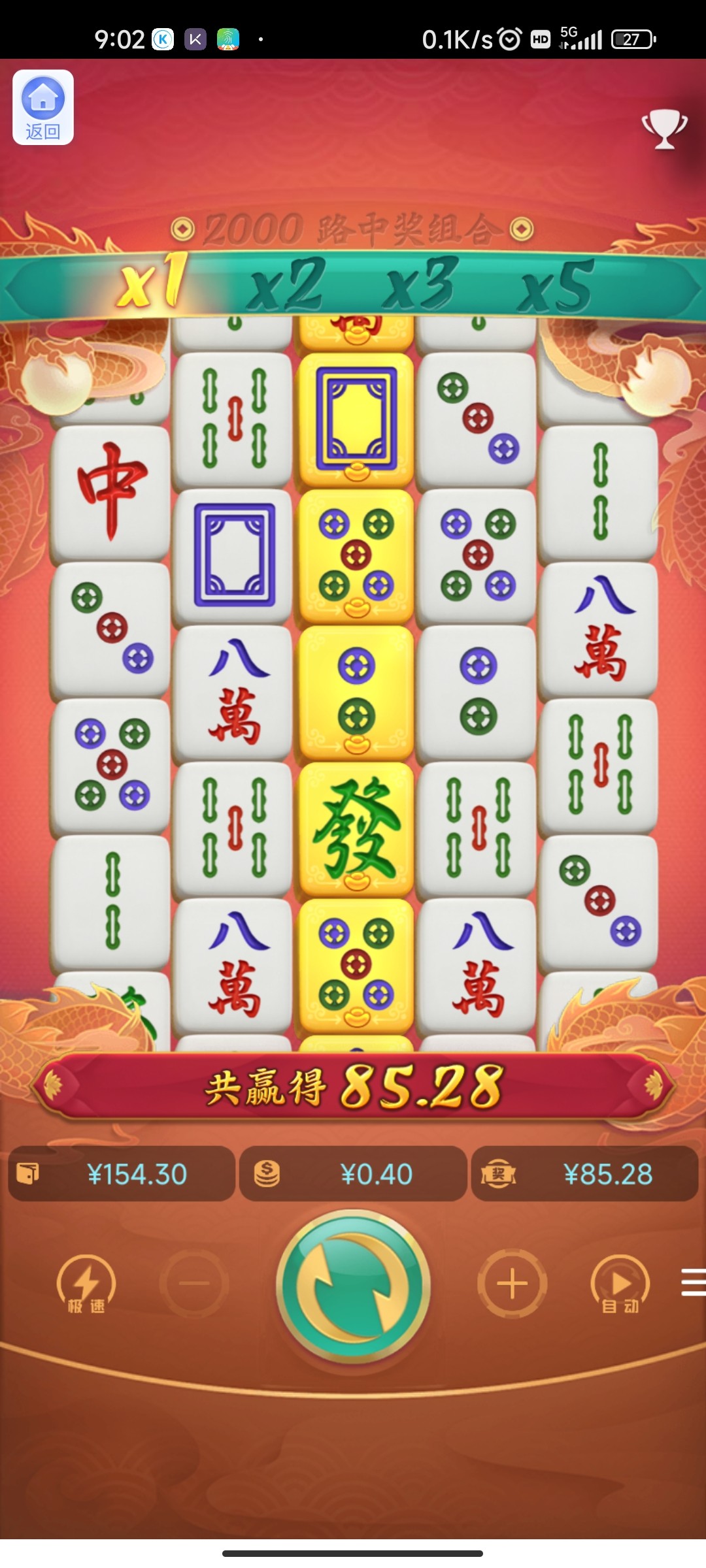 我试过一直胡中胡中胡胡胡胡6次,400倍不到