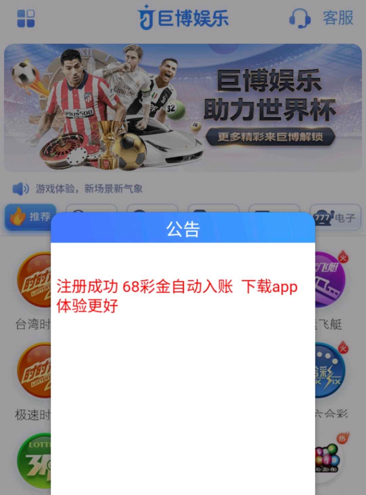 新用户注册绑定手机号秒送68,只能玩彩票,没送的无视