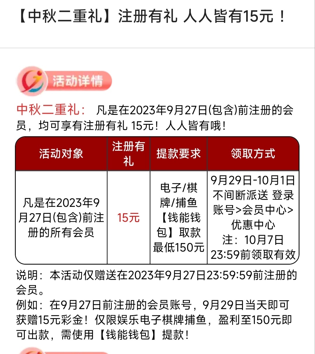 老用户中秋节期间回馈15,详细介绍看活动。