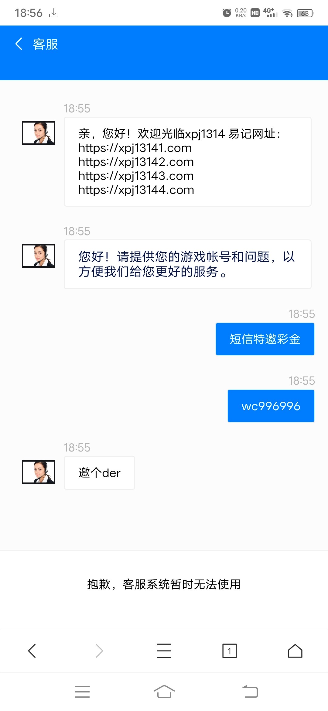 分别是两个网址入口,都是送66。注册找客服拿图进行碰瓷