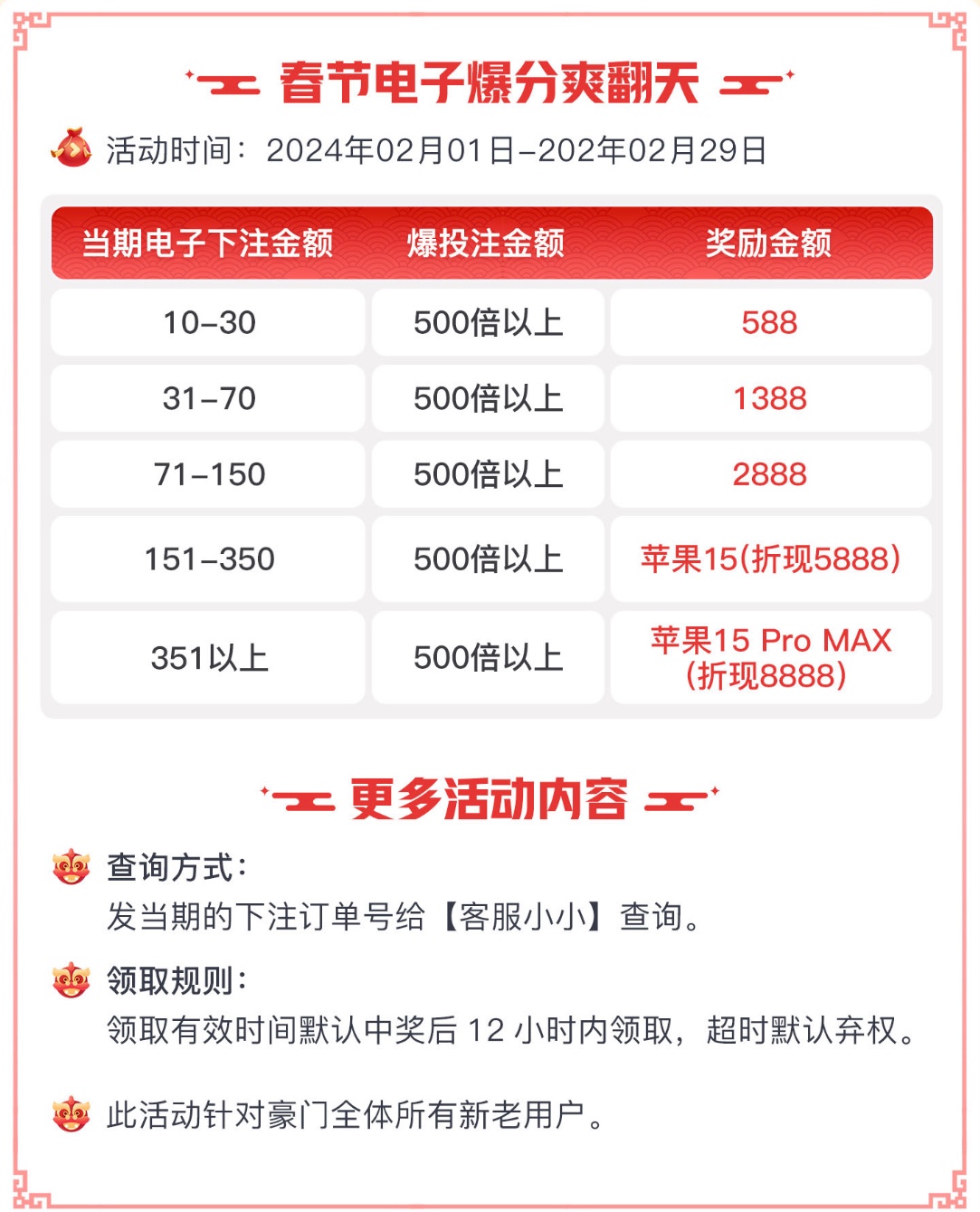 春节电子爆分彩金 最高领取iPhone15 Pro Max