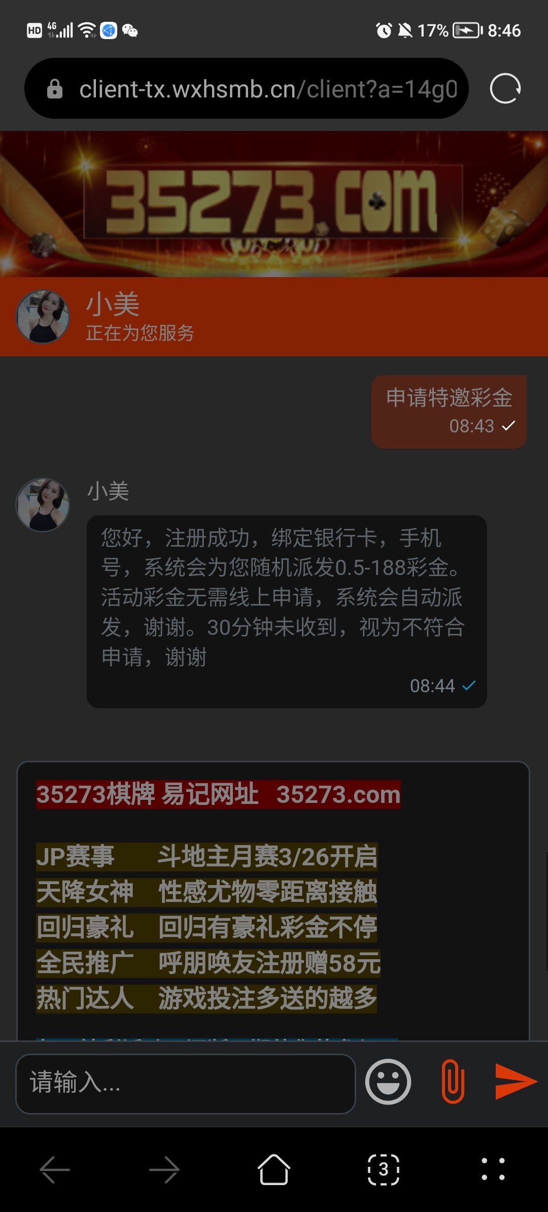 我之前就注册了,今天收到短信,日他妈