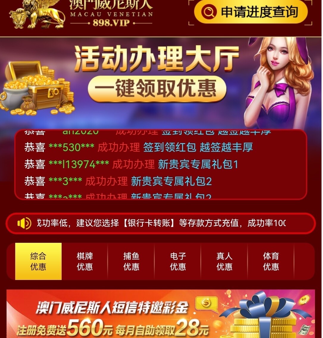 新用户先下载app注册绑卡,活动大厅自助申请28彩金,基本上人人都有。