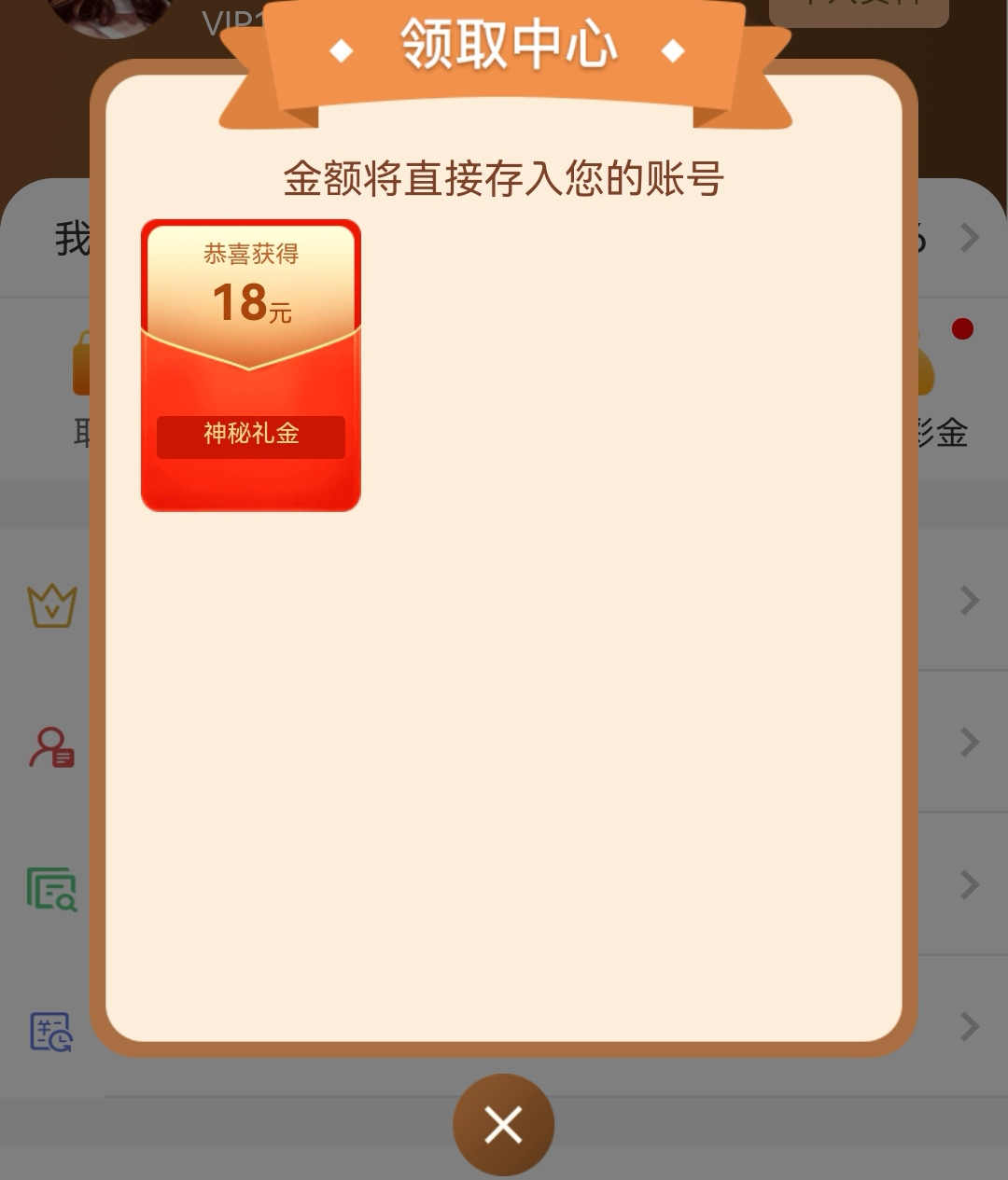部分老用户登录我的-领取彩金里领取回馈18元,没有的无视