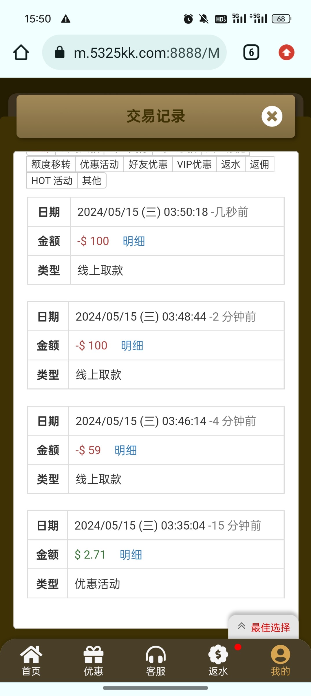 这台子真的可以,水超级大,今天6块钱红包又白嫖137,俩号b分没充,撸了将近1000