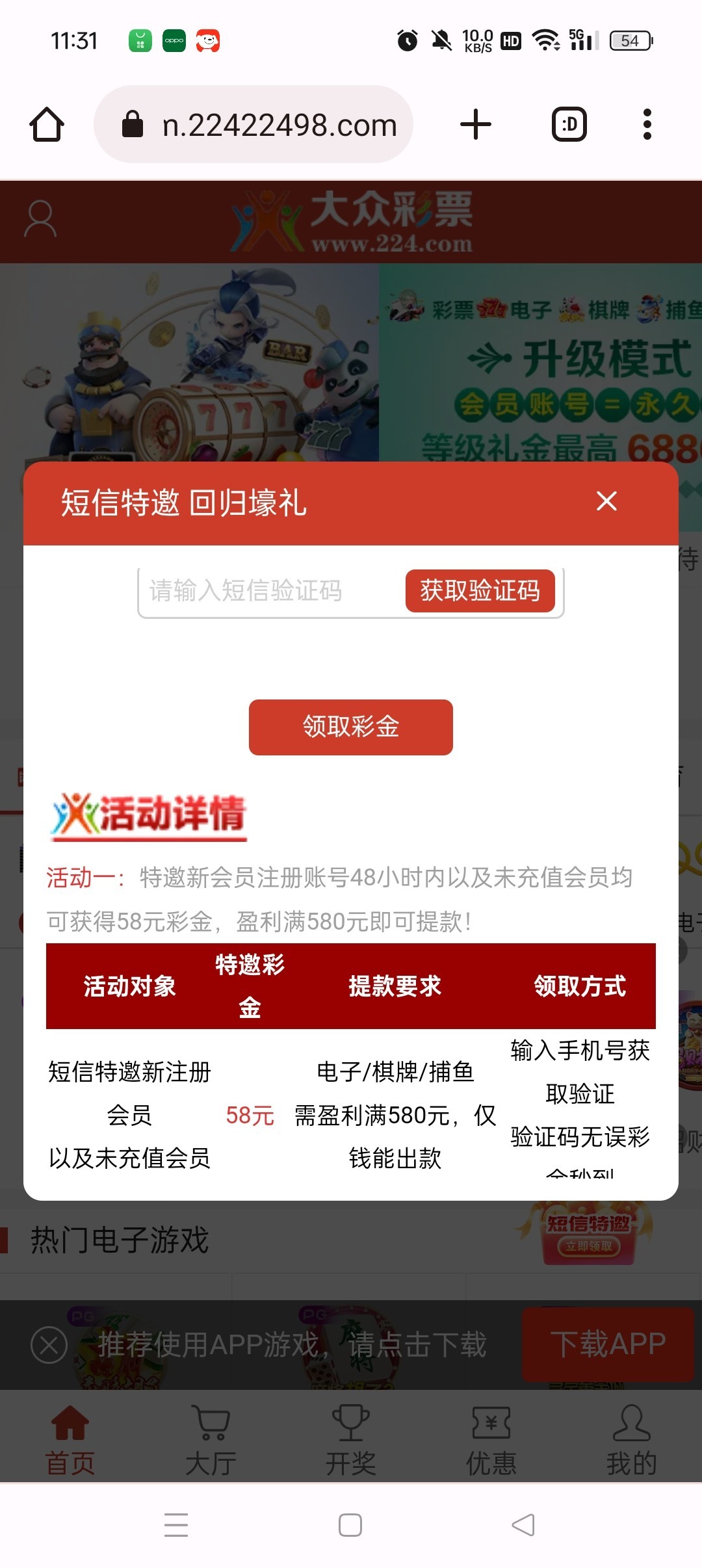 大众224特邀58彩金