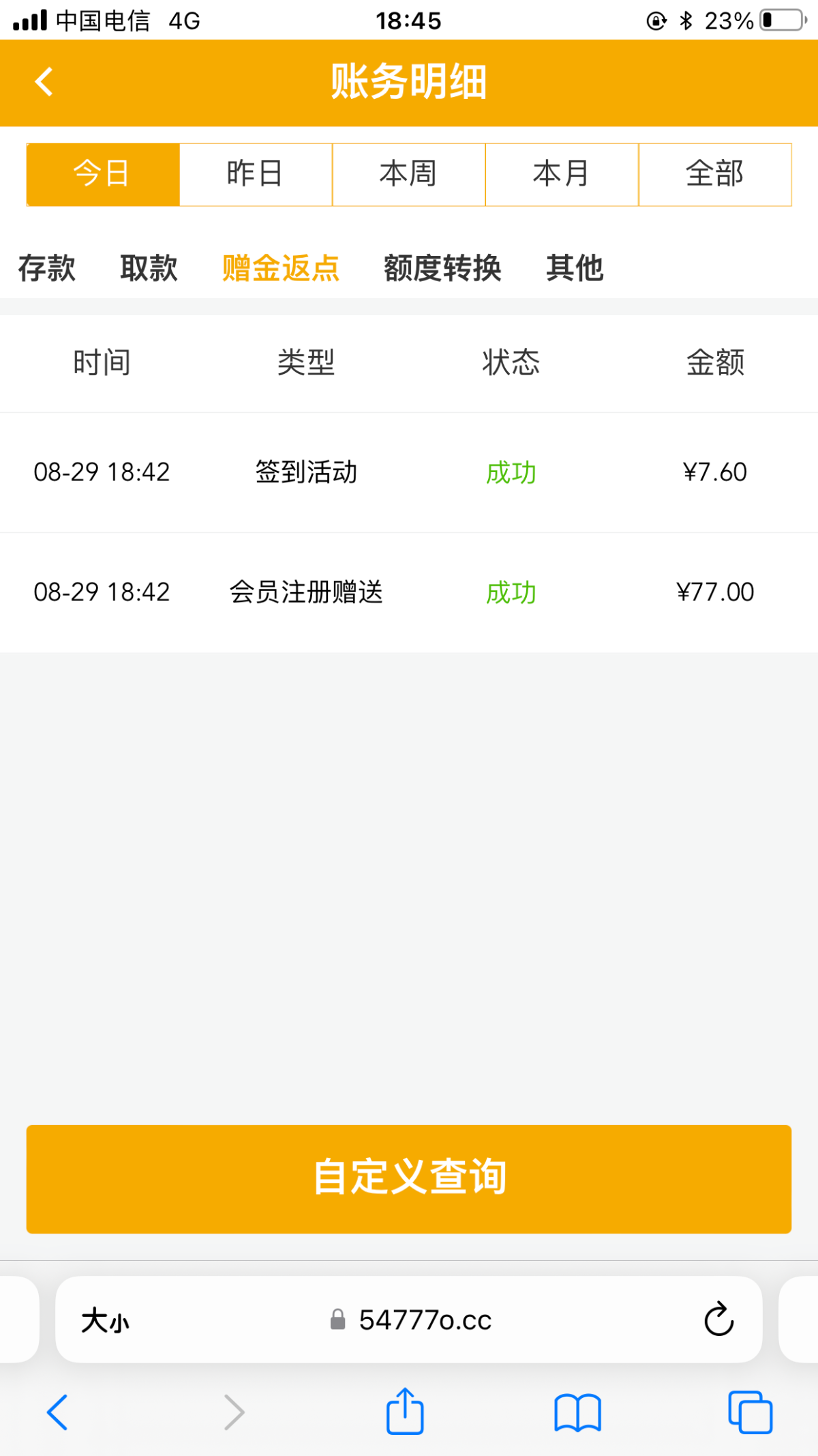 送了77签到送7,84打到1000+,刷完流水710,充值50打到900提款成功。