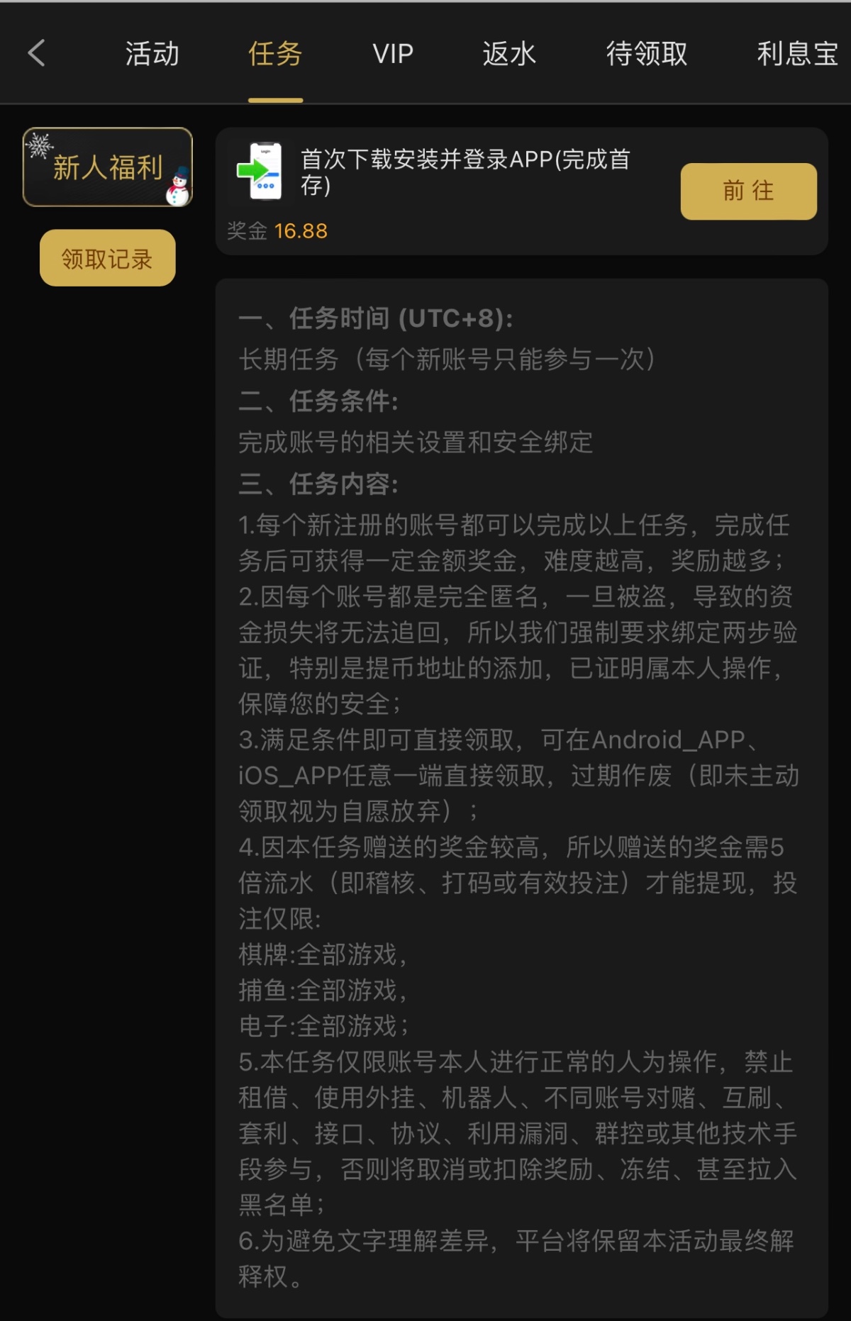 2:首存任意金额领取16.88 (20都可以)