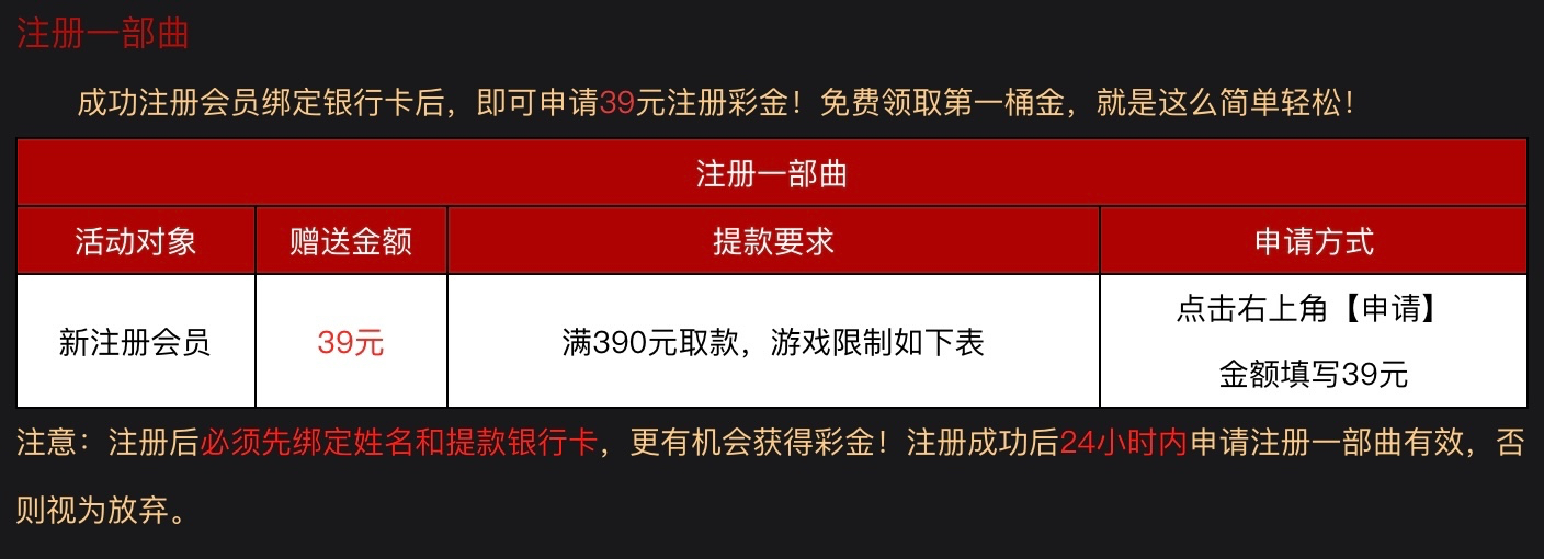 新用户注册自助申请39彩金