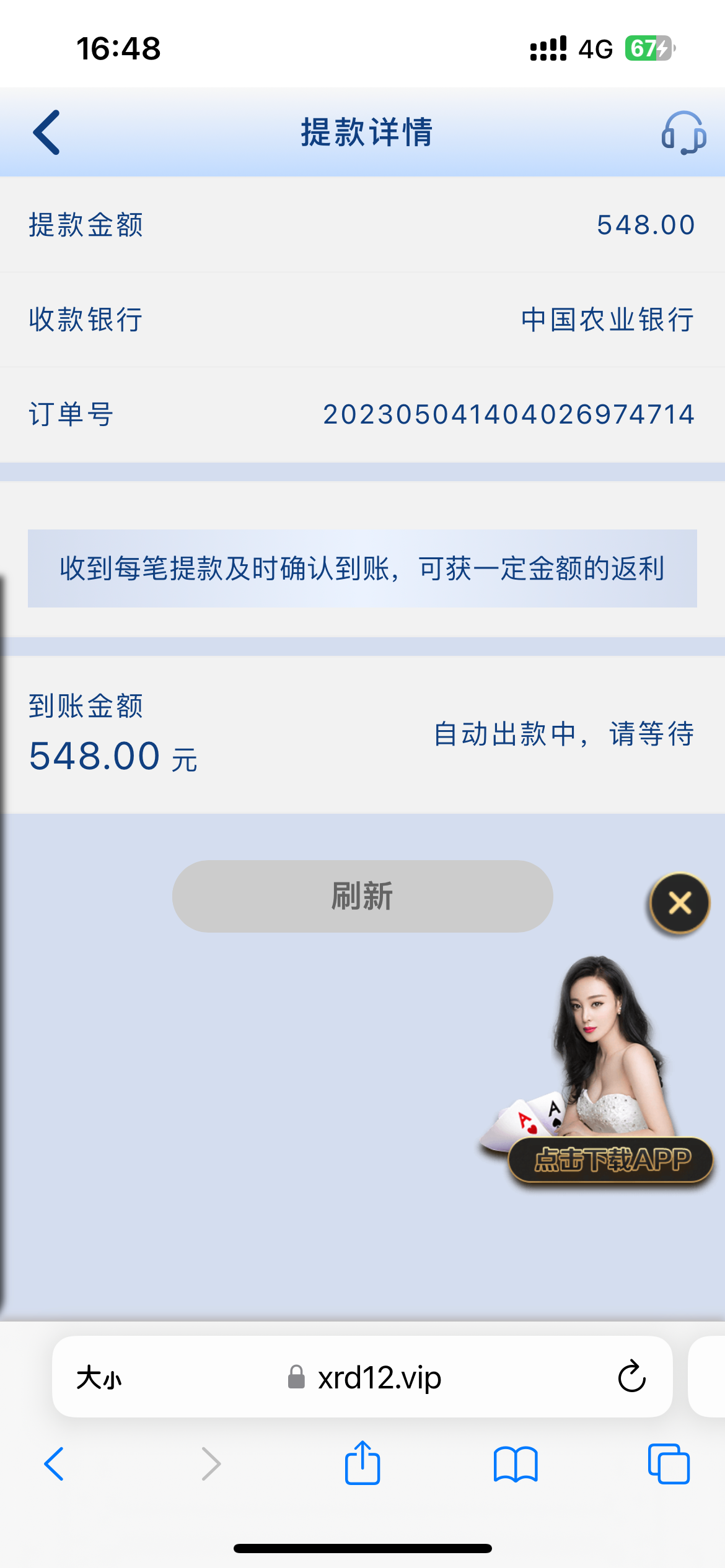 xkzt666 提现548三个小时 刚刚显示提现成功 提现金额0