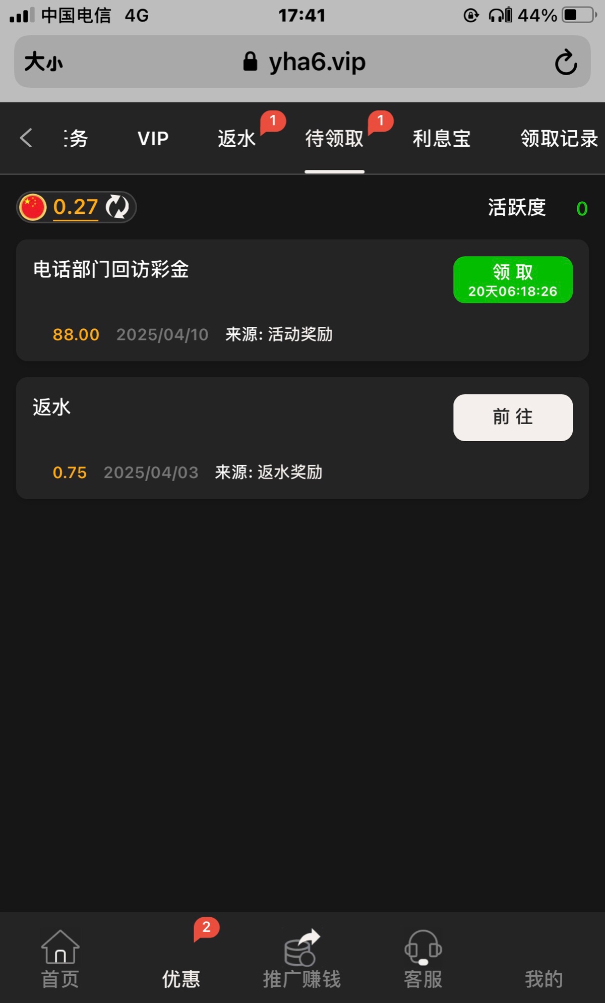 有号的去看看 在领取那里拿 网站yha6.vip
