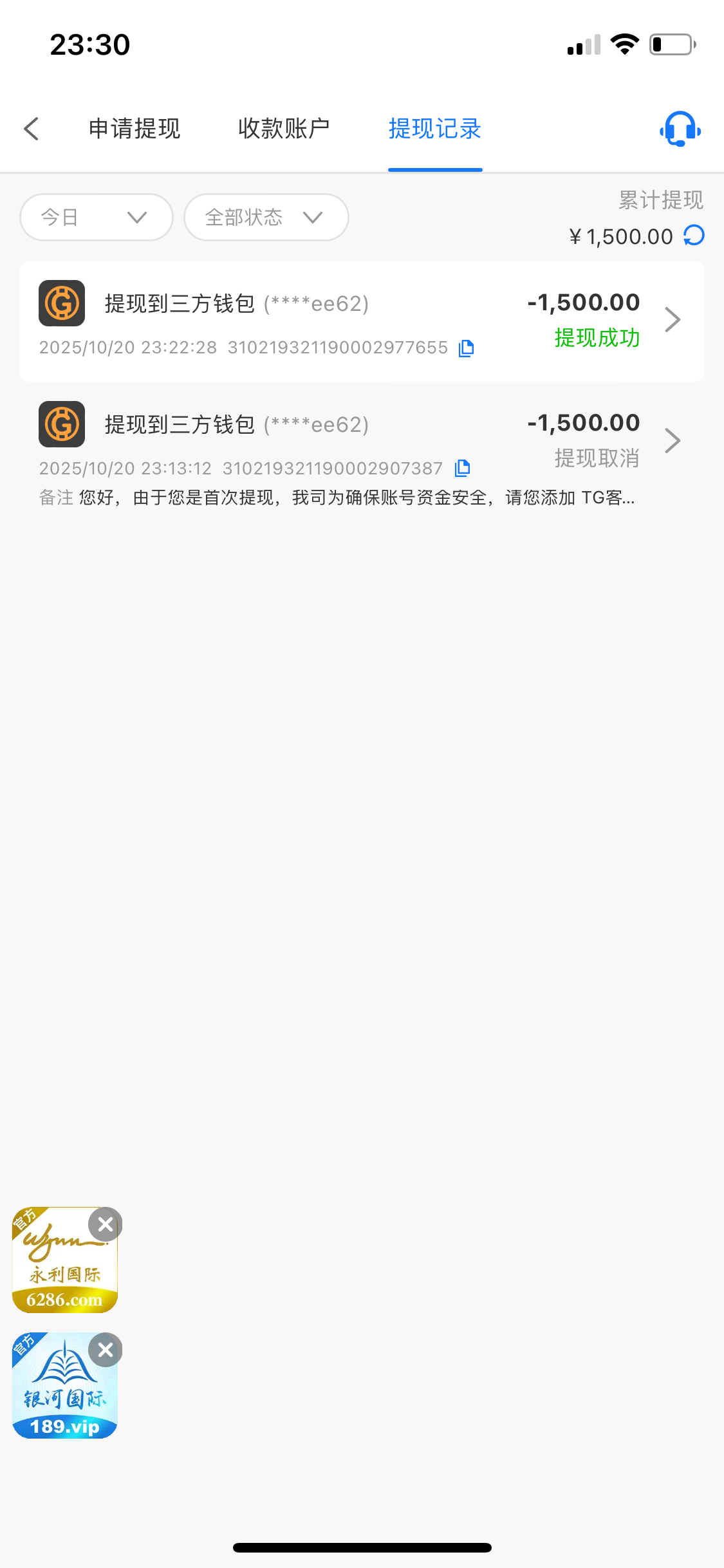 提现到了,出了1500