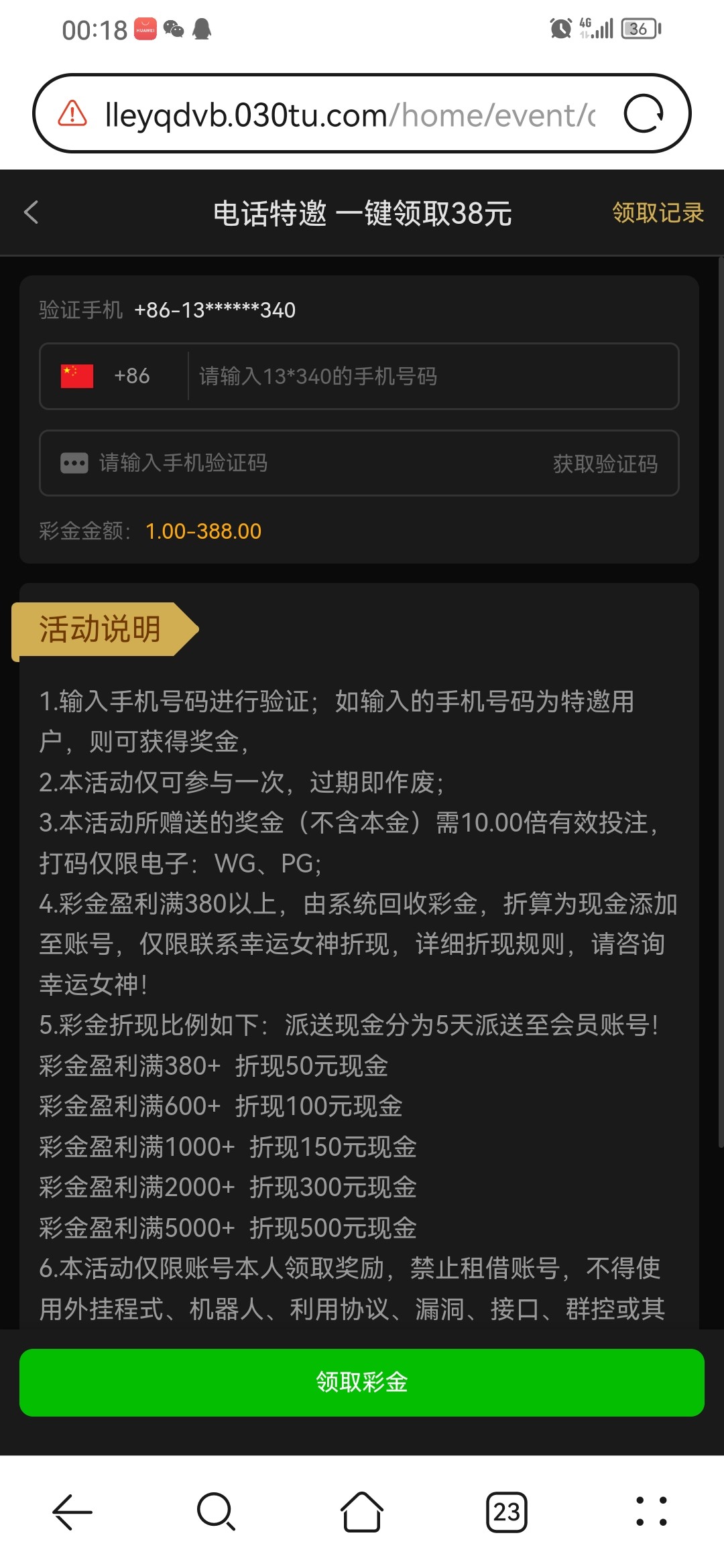 领4块2就算了 还打上多少才给你多少彩金 还分5天给 扣的不行