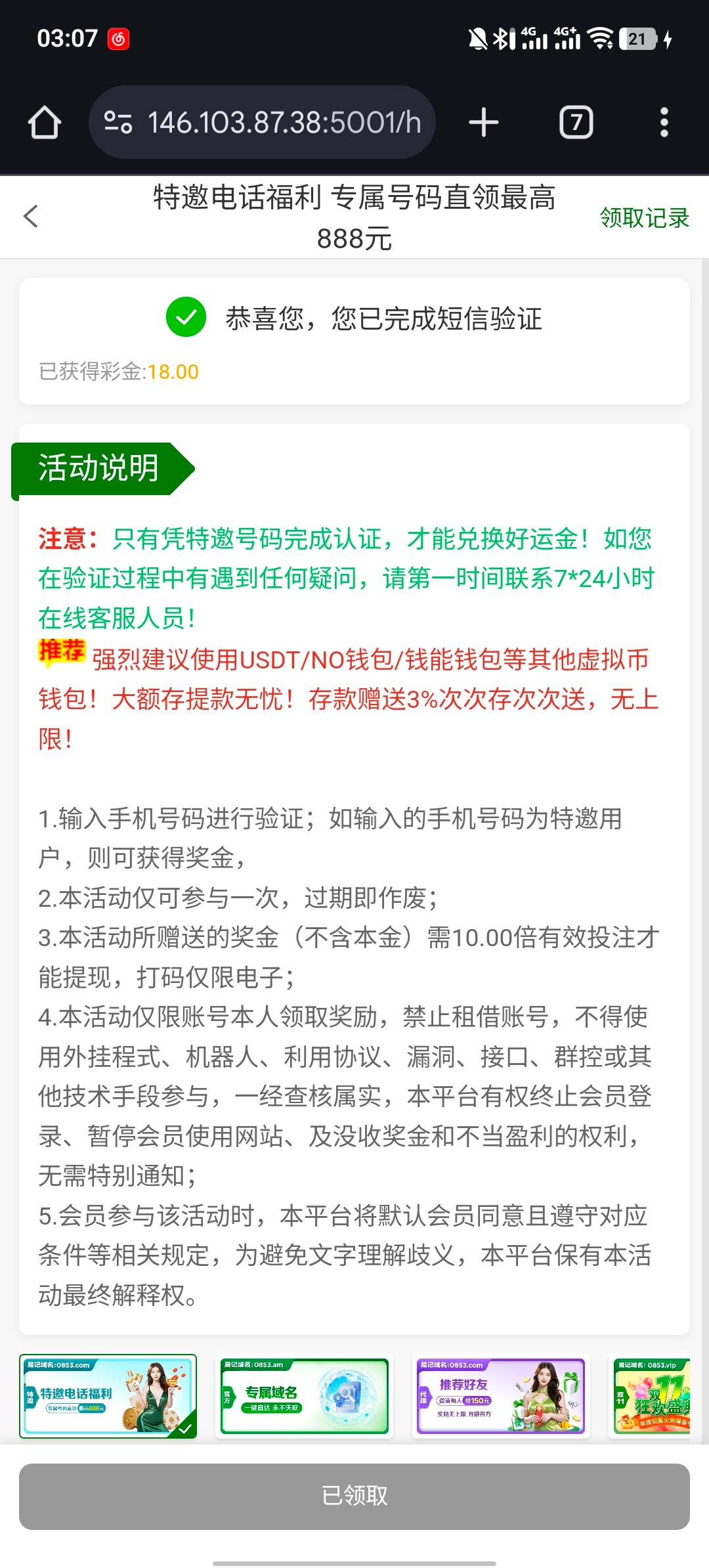 3、本站资源均来自互联网-需自行判断与负责。每日更新(论坛内容仅用于 薅羊毛 白嫖 论坛严禁充值娱乐 严禁任何形式推广 发现一律提交当地公安 )感谢您的支持!