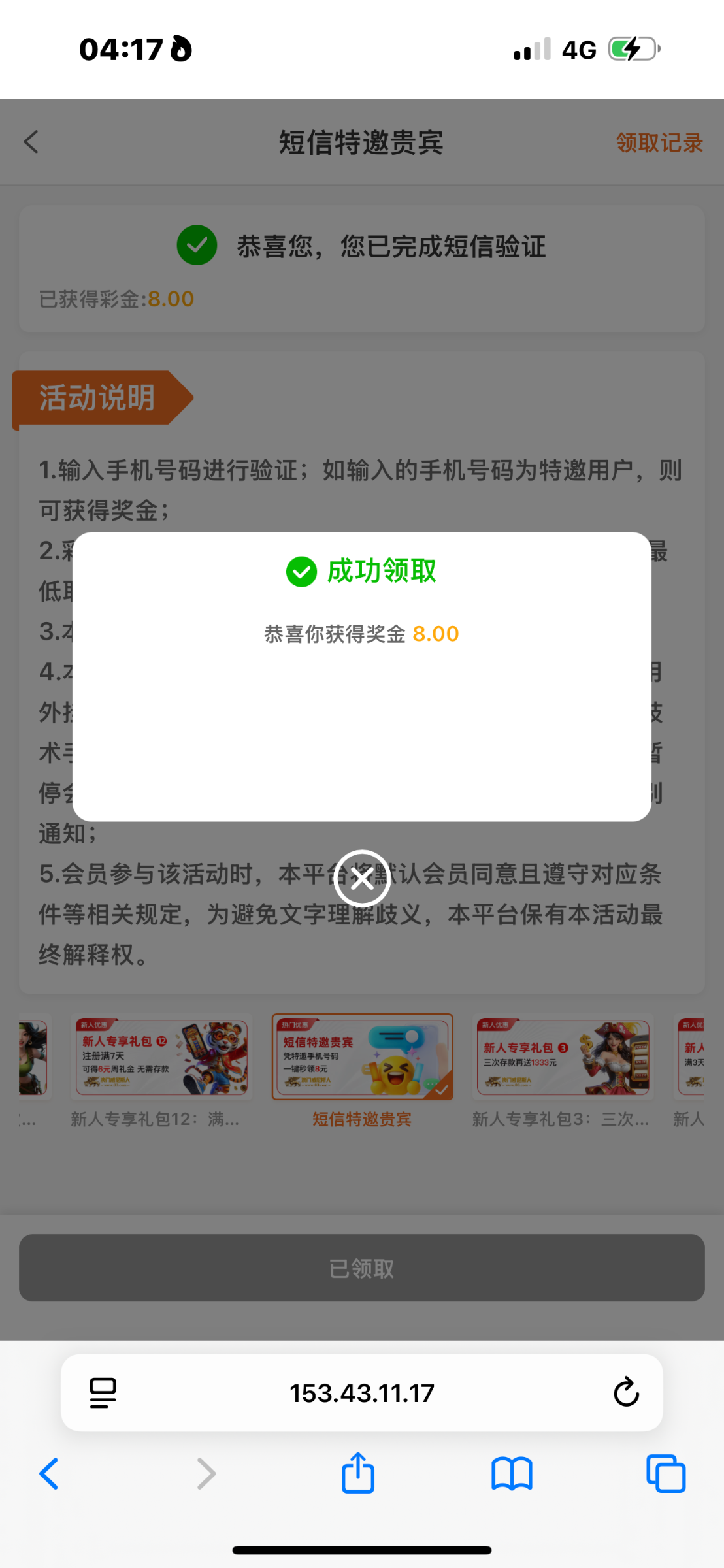 03.com 以前不是特邀 然后无聊刷到上号重新试了一下 送了8块钱 去碰瓷看看