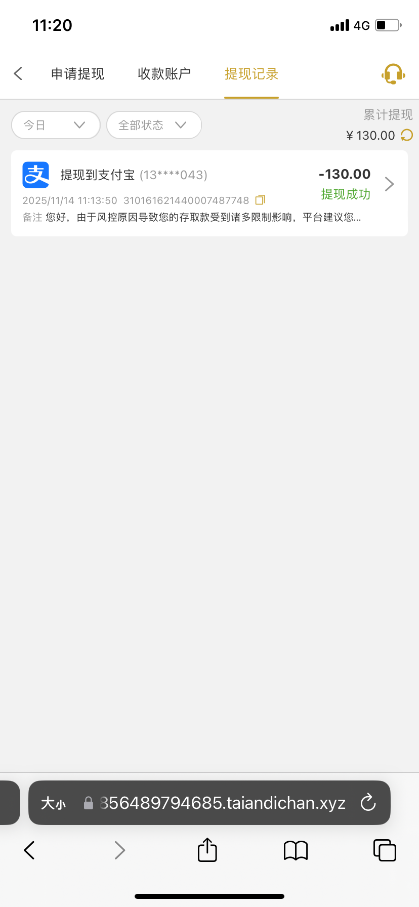 吃了300就是支付宝提现太慢了等了2小时