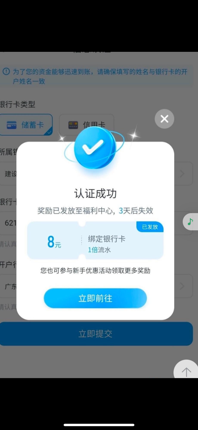 注册绑定手机和银行卡送两个8元