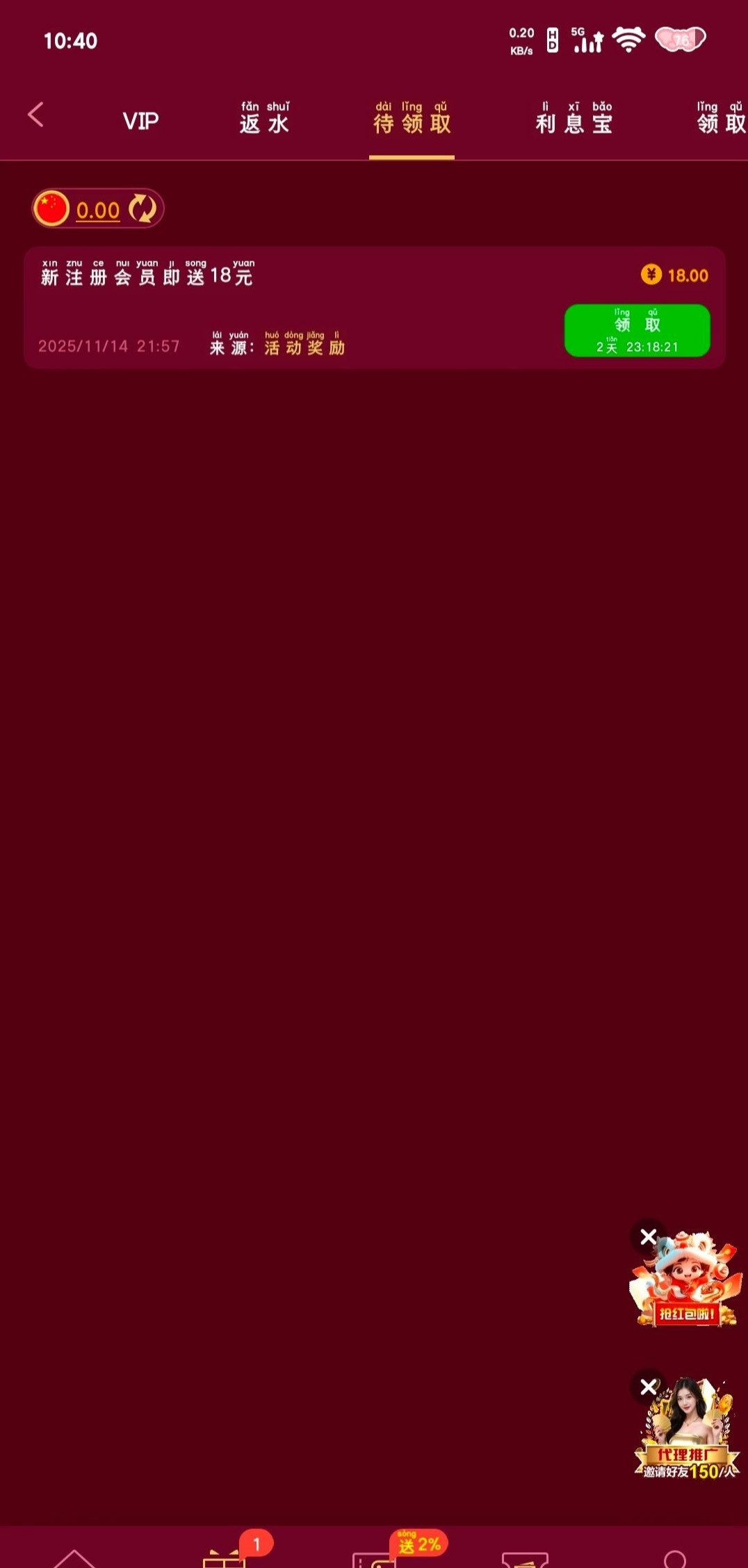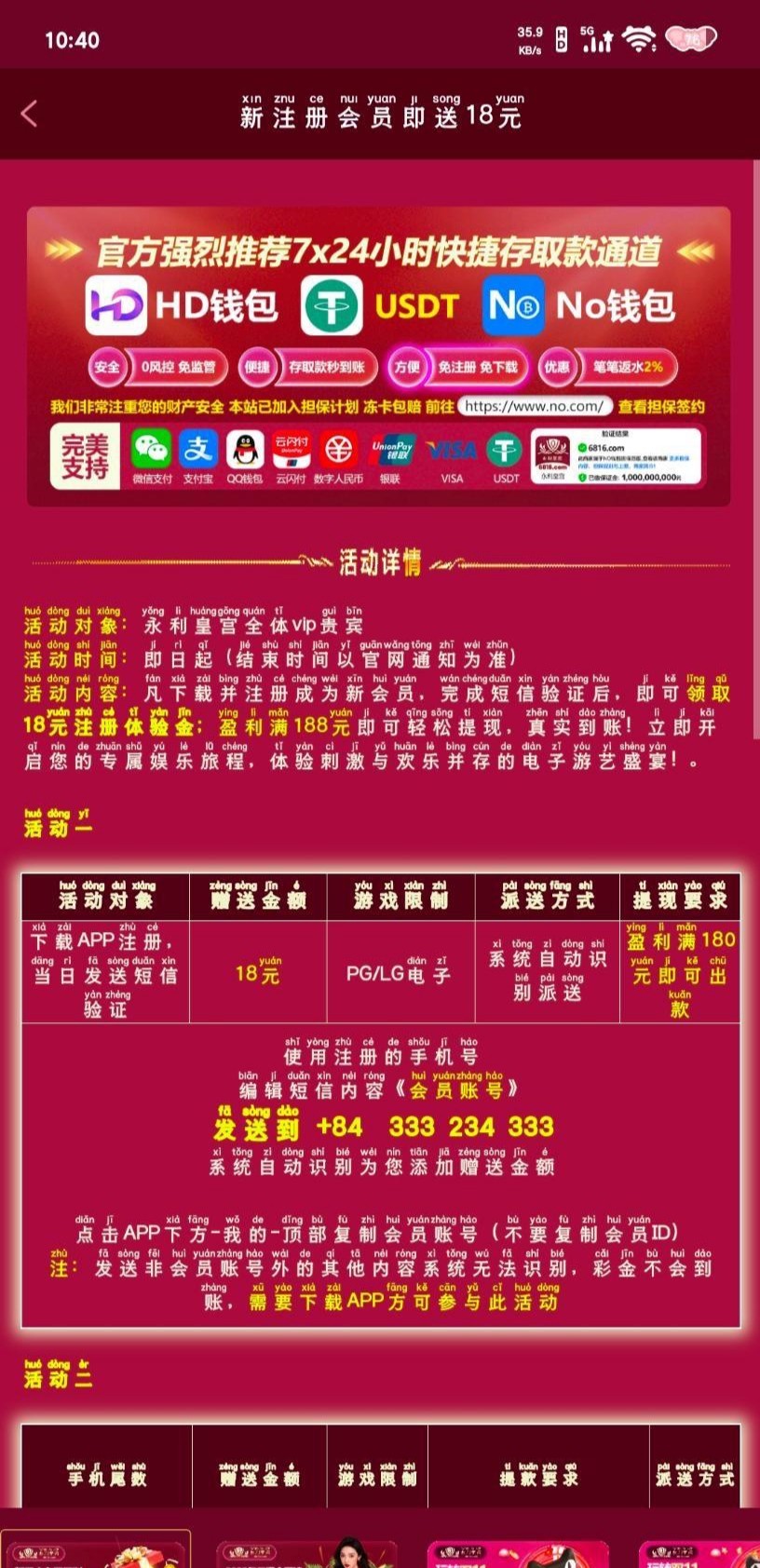 注册下载发短信送18