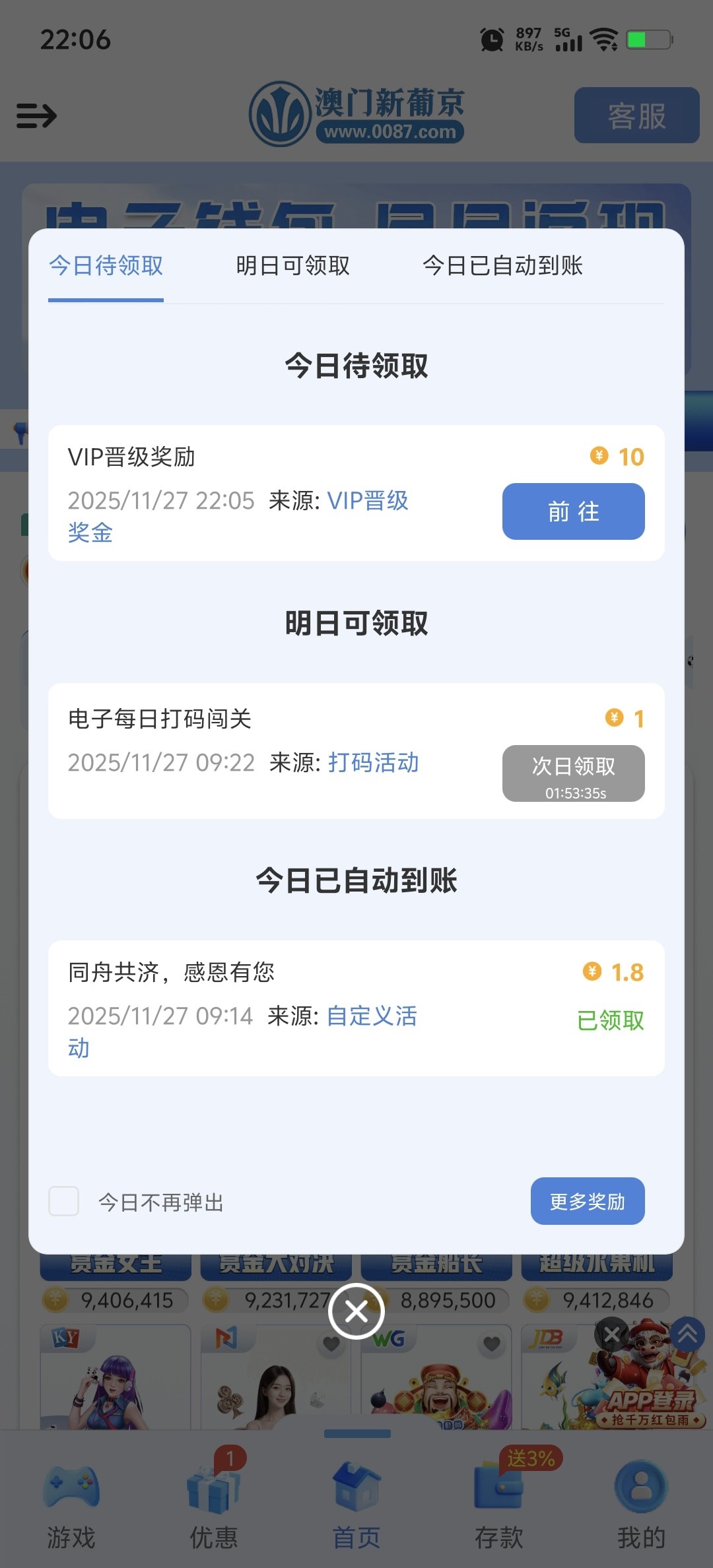 【0087新普京VIP流水改版彩金】