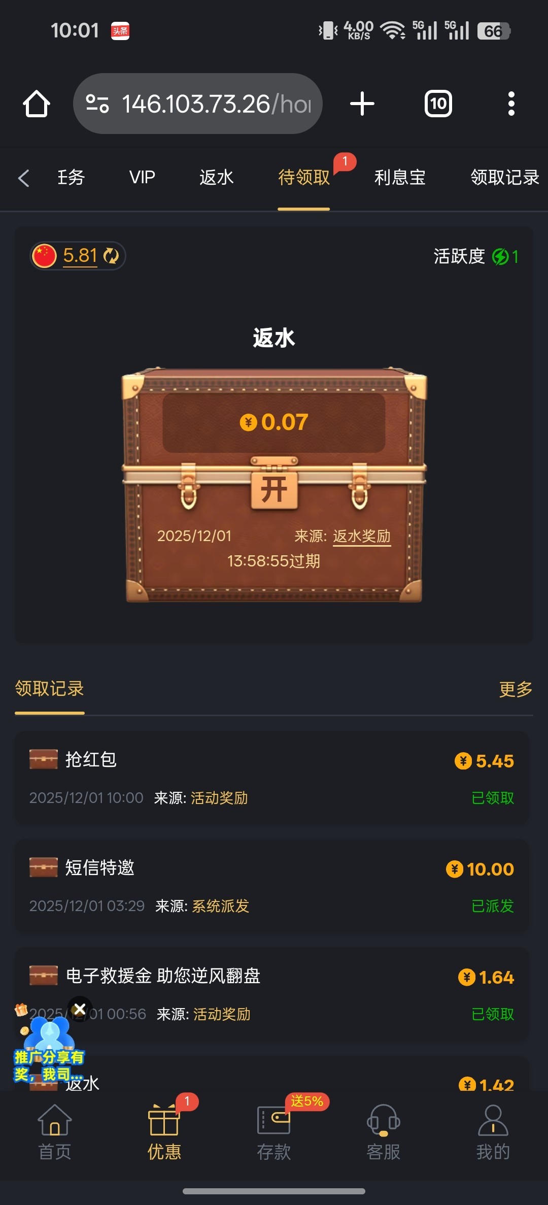 优惠中心自助申请特邀彩金