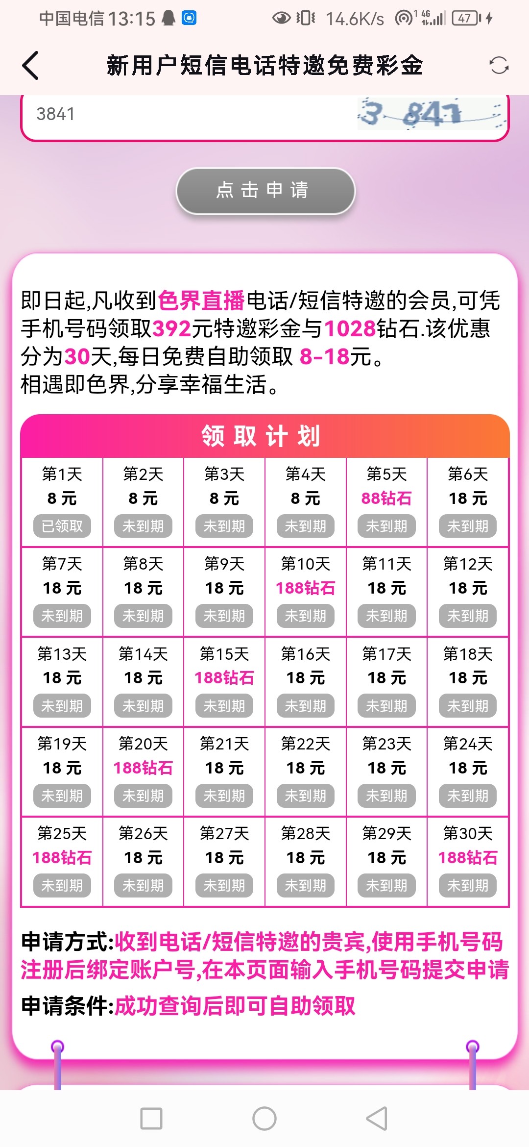 反正我领到第五天还是第七天就领不了 需要充值