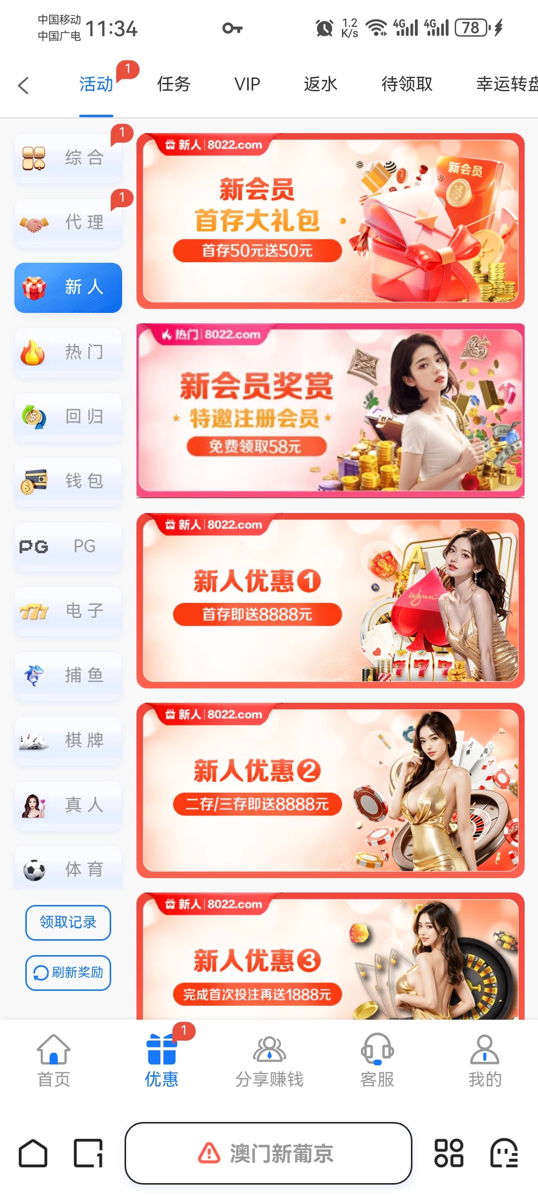 短信特邀,自己去申请看有没有漏接电话或是短信,出款自测,白嫖为主,切勿充值