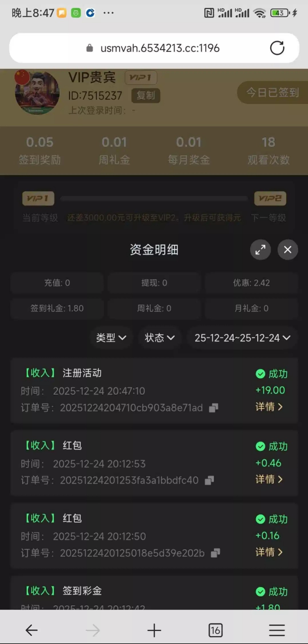 3、本站资源均来自互联网-需自行判断与负责。每日更新(论坛内容仅用于 薅羊毛 白嫖 论坛严禁充值娱乐 严禁任何形式推广 发现一律提交当地公安 )感谢您的支持!