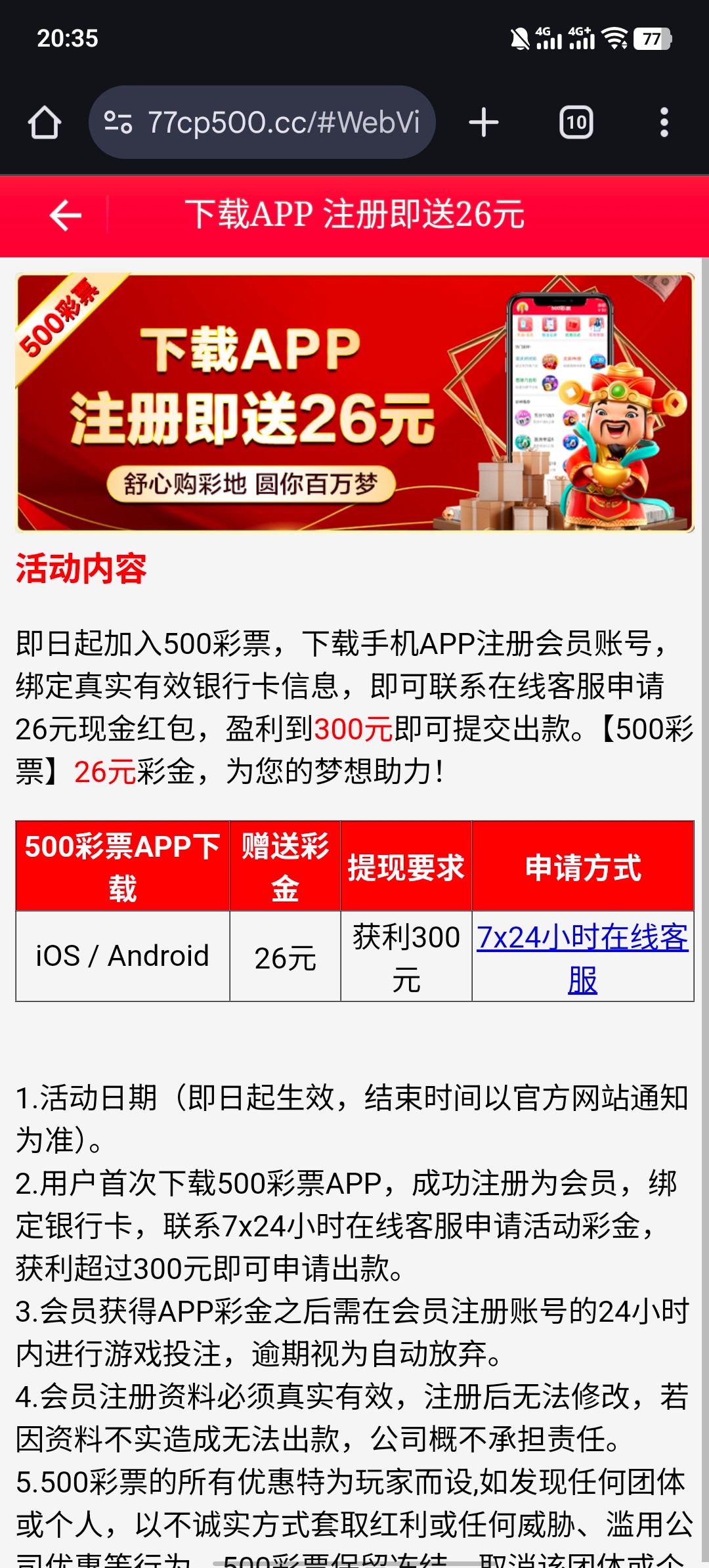 下载手机APP注册会员账号,绑定真实有效银行卡信息,即可联系在线客服申请26元现金红包 查ip