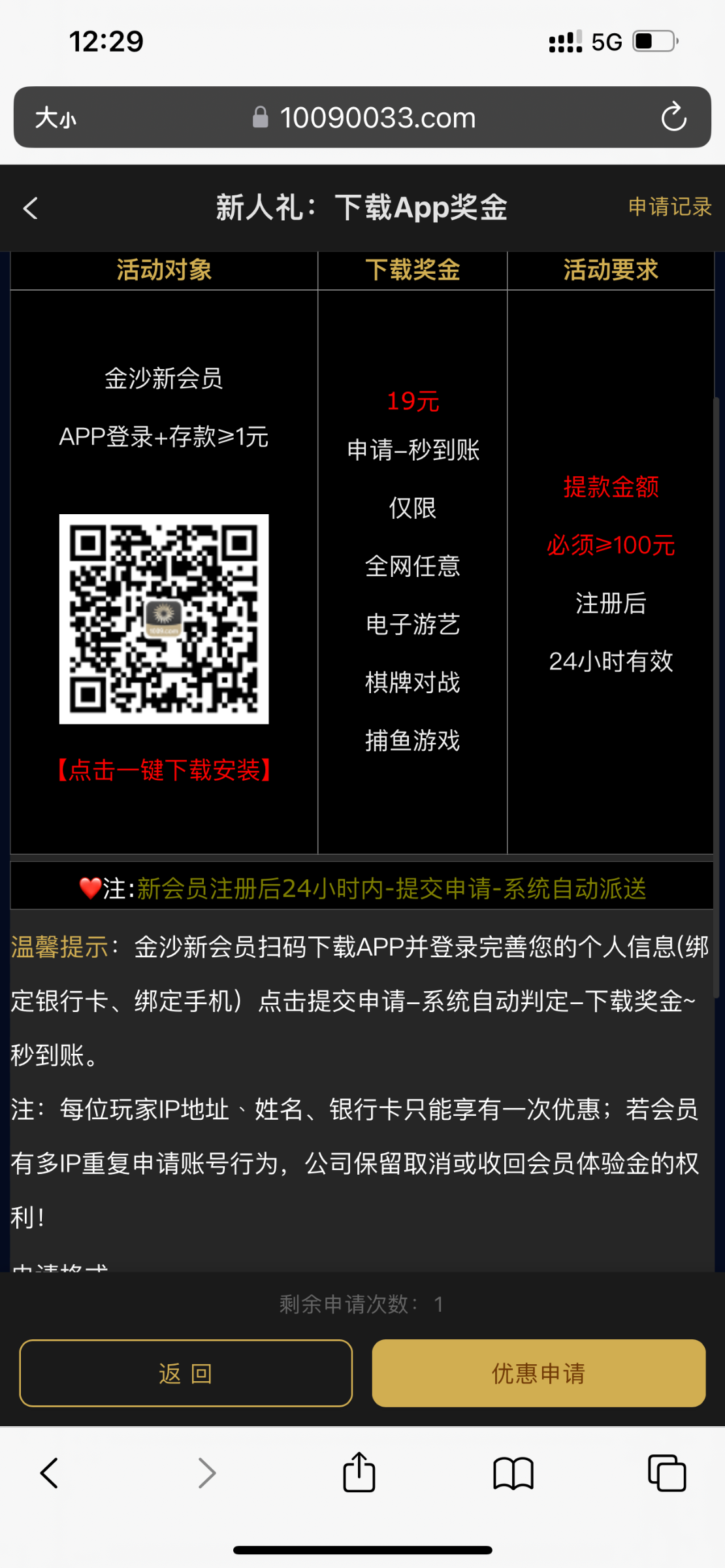 注册下载app绑卡绑手机号充值1块 优惠自助申请19彩金,不送无视,风险自控,具体限制自行优惠中心查看