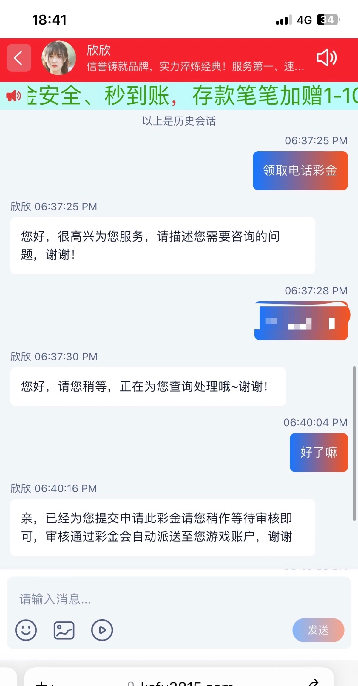 找在线客服碰瓷领取电话彩金,有号的去碰碰,链接3815yy.com