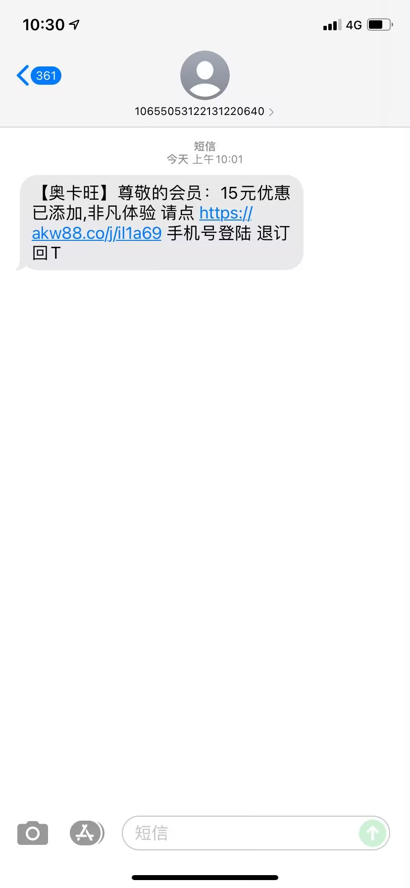 【奥卡旺】尊敬的会员:15元优惠已添加,非凡体验 请点 https://akw88.co/j/il1a69 手机号登陆 退订回T