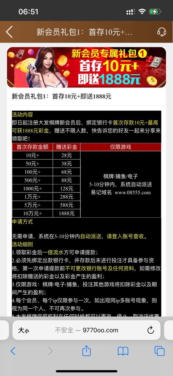 注册充10,过一会送28,3水,限制看下图!
