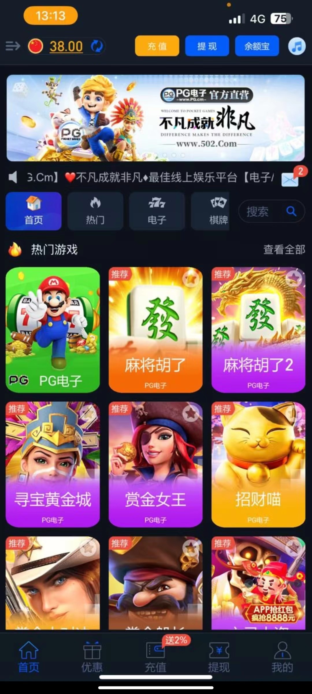 简直就是大水平台 第一次一百提了五百 后面两百都是破k 从来不玩麻将