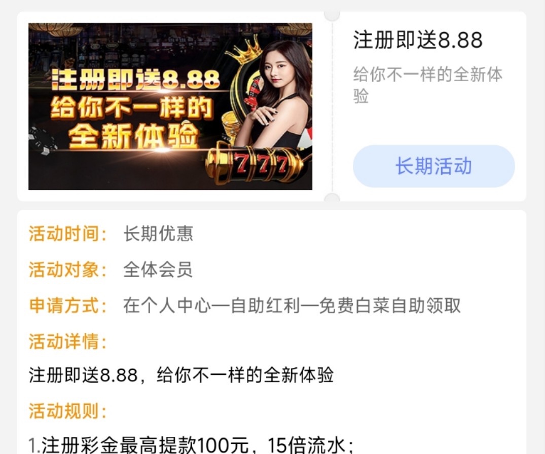 新用户注册个人中心自助红利里面秒8.88